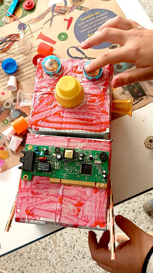 Durante os três dias de atividades, cada criança teve a oportunidade de construir seu próprio Robô Falante. Utilizando materiais como caixas de papelão, peças diversas e muita criatividade, os participantes deram vida a esses simpáticos robôs.